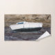 Boat grounded at mooring in Brittany Hand Towel
