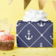 Coastal theme navy blue and white anchors and ships rope graphic pattern wrapping paper