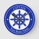 Personalize this boats blue ships wheel nautical themed yachting sailors or captain with the name of your sail or motor boat and customize the captains text template with another member of your ships crew.