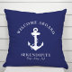 Boat Nautical Anchor Navy Blue Welcome Aboard Cushion