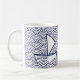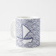 A mug with a boat on a Japanese wave pattern. Customise the mug with your name or your own text.