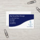 Boat storage business cards with boat anchor and blue and white background, along with great text layout you can personalise now. Best business cards designed as a busines card template for a boat storage facility, boat slips, or marina.