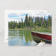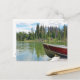Boat tied to dock on lake postcard