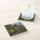 Glass photo coaster with a wooden boathouse cabin inside Obersee lake surrounded by beautiful high Alps mountains in a Bavaria landscape in the south eastern tip of Germany, near the border with Austria.