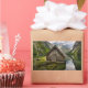 Rectangular photo sticker with a wooden boathouse cabin inside Obersee lake surrounded by beautiful high Alps mountains in a Bavaria landscape in the south eastern tip of Germany, near the border with Austria.