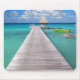 Mousepad with multiple boats at a jetty in the clear turquoise lagoon of a tropical island in French Polynesia in the Pacific ocean.