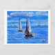 Experience the tranquility of the open ocean with this stunning postcard. It features a captivating scene of boats gently floating on the water. This postcard is perfect for sending a thoughtful note to a friend or simply adding a touch of nautical charm to your collection. Whether for a special occasion or just because, this design is sure to delight. Find more art and designs at Gordon Powles Art.