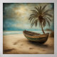 Fantasy view of a dream I’ve had for years of a small boat on a beach with palm trees.