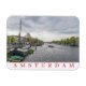 A beautiful photograph of boats on a canal in Amsterdam in the Netherlands printed on a souvenir fridge magnet.