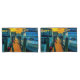This Set of Pillowcases features an original photograph by ZoeSPEAK of a sunset over the harbour. The wooden walkway between two boats is lit up by the sun, looking almost as yellow orange as the sky. The two boats are in shadow, in shades of bluish white, forming a calming scene in complementary colours.