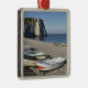 Small fishing boats on the famous pebble beach and cliffs of Etretat, commune in the Seine-Maritime department in the Haute-Normandie region in northwestern France. Landscape