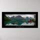 Panorama poster print of a landscape with two old rowboats in a lake with the reflection of the mountains in the still water at Hjelle Hotel, Hjelle, Stryn, Sogn og Fjordane, Norway on a black background with the text: 'Norway'. Perfect decoration on your wall!