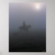 Bob Langrish | Cowboy Riding In Mist With Dog Poster