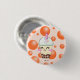 This Adorable button features a bubble milk tea with boba on a background of orange bubbles.