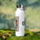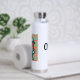 Cute Kawaii bubble teal with cool retro text with a vintage vibe in orange and mint green. Personalised water bottle.