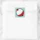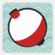 One single red and white fishing bobber. Pale green "water" behind with wavy lines