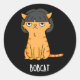 Bobcat Funny Cat Bob Hair Pun Dark BG Classic Round Sticker