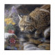 Bobcat with Wildflowers Scenic Art Ceramic Tile
