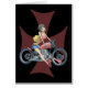 A biker chick and chequered flags with a Maltese Cross and, "Biker Chick" lettering. T-shirts, sweats, cards, novelty gift swag.