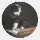 Bobtail puppy portrait in studio classic round sticker