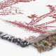 Classic toile de jouy design centres around the Northern Bobwhite Quail in a dark red on a white background.