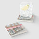 The coasters are gorgeous, a quality feel and heavy weight. They look like a precious archeological find. A rustic stone juxtaposed with a modern floral black and white print. I like the way the print goes slightly imperfect on the cut stone edges giving them a kind-of natural beauty.