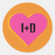 Boda Corazón Rosa y Naranja logo with Initials Classic Round Sticker