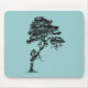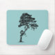Silhouette of a bonsai tree created with the words "aware, evolving, transcending, conscious, awakened, translucent and present". Mousepad colours and orientation totally customisable.