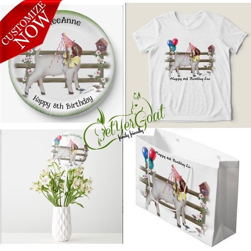 Boer Goat Birthday Party Repeating pattern Tissue Paper- cute boer goat kid wearing a birthday hat and birthday balloons for the complete goat theme birthday party