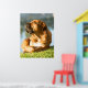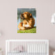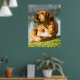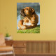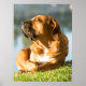 Poster, with a high-definition image of a beautiful Boerboel dog lying on the grass, in front of the river, while enjoying the early morning sun with eyes closed. Customisable