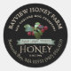 Add in your business name, address, net wt and honey description. Black label with gold text and red and green cranberry illustration.