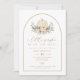 This baby shower invitation features a bohemian arch with earthy terracotta and white florals and a cute white pumpkin. This baby invite is perfect for your fall or boho inspired baby shower event. Pair with anything in the BOHEME collection for a cohesive look.