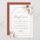 boho pampas grass arch design, custom photo baptism and christening invite. The text and colors can be edited.