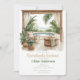 This trendy boho bachelorette weekend features a thatch roof covering an ocean front spa with tan and green text. All the details of can be edited to meet the needs of your event. On the back has a border of spa items surrounding the weekend itinerary .