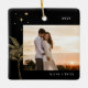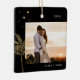 Bohemian beach palm tree and stars, holiday photo ornament in faux gold foil and black.
