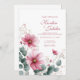 Embrace a fresh, free-spirited style with this beautiful and airy wildflower invitation. The design features a light and romantic watercolor floral arrangement that gracefully blooms from the corner of the card. Whimsical pink cosmos flowers in shades of vibrant magenta and soft blush are delicately accented with tiny sprigs of baby's breath. This beautiful bouquet is artfully combined with modern, soft sage green eucalyptus leaves, creating a chic, organic feel against the clean, minimalist white background. While perfect for a bohemian or wildflower-themed wedding, a rustic outdoor celebration, or a casual spring garden party, this versatile design is also a wonderful choice for a chic bridal shower, a sweet sixteen, or a joyful baby shower. Set a tone of fresh, natural beauty and effortless romance for your special day.