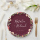Elegant watercolor colourful bohemian floral and foliage frame, personalised paper plates in burgundy. Designed to match our Bohemian Blooms Wedding Collection.
