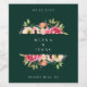 Elegant watercolor colourful bohemian floral and foliage frame, personalised wine labels in emerald green. Modern design style template provides lines for names, event date and location.