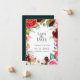 Elegant bohemian style watercolor flowers, feathers and foliage frame in trendy shades of burgundy, pink, green, red, violet and peach, Wedding Save the Date Card. Back of card features solid emerald green colour.