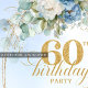 Bohemian Blue Floral 60th Birthday Invitation