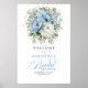 Bohemian Blue Floral Greenery Bridal Shower Welcom Poster