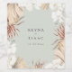 Trendy boho-chic dried botanical frame of palm fronds and white orchids on chic silver sage green background, personalised wine labels. Font style and colour can be customised.