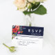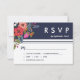 Bohemian Bouquet - Navy Blue & Coral Wedding RSVP Card