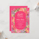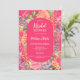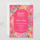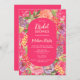 Bohemian bright floral arch script bridal shower invitation featuring pretty hand painted bright and bold modern flowers mix a vintage feel, with coral peonies, purple flowers, pink roses and greenery with a botanical boho themed bridal party. With a modern script typography and neon pink.