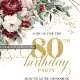 Bohemian Burgundy Gold Floral 80th Birthday Invitation