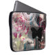 Retro style personalised laptop or notebook computer case has a pattern with black butterflies, bubbles, stenciled rose and gothic filligree on a grey micro patterned background. Fill in your name in the Personalise it section above or clear the field to order without text.. © Little Wing Photography & Design