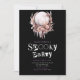 The text on the invitation alternates between stark white and light purple, providing a striking contrast that enhances readability while maintaining the eerie ambiance. The phrase "spooky party" is presented in a distinctive horror movie cut-from-magazines letter font, often referred to as ransom note or poison pen style. This unique font choice adds an extra layer of creepiness and horror, perfectly setting the tone for a thrilling Halloween event.