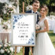 Greet your guests in style with this stunning Dusty Blue Floral Wedding Welcome Sign. This sign is a perfect blend of bohemian and chic esthetic, featuring a delicate floral design in shades of light blue. To display this poster, you can mount the poster on a foam board or a wood board to be displayed on an easel or hung on a wall. And for your convenience, it also available as a digital download for self-printing.