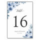 Bohemian Dusty Blue Floral Wedding Table Number Card.