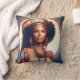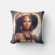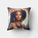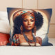 This throw pillow features a radiant illustration of a black woman draped in bohemian elegance, complete with a stylish turban and layered ethnic necklaces. Perfect for adding a touch of cultural sophistication to any room.